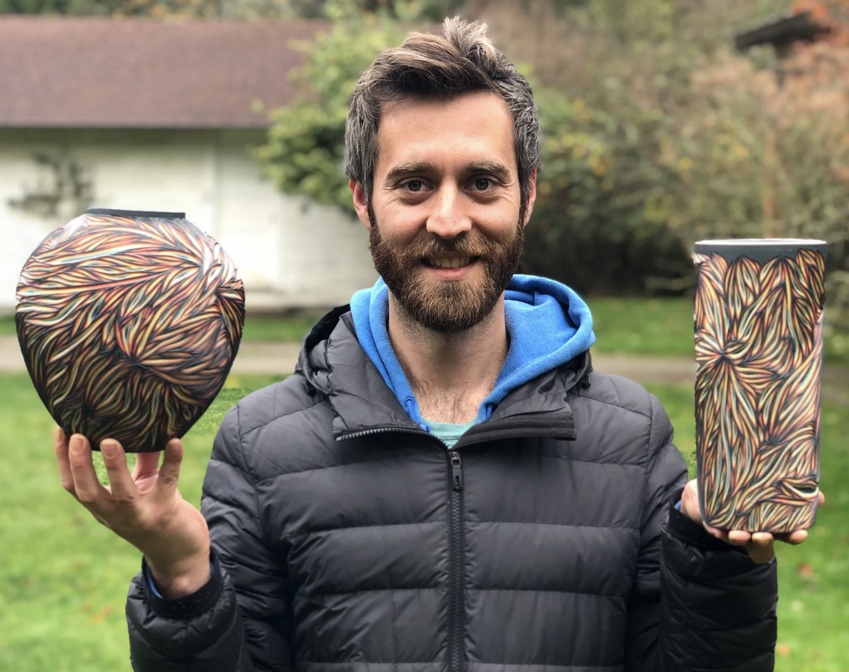 Sean Forest Roberts opened Forest Ceramic Gallery in 2015 to share his experimental approach to layered, hand-carved porcelain pottery on Orcas Island. With a background in chemistry and years of lab experience, Sean developed a distinctive marbling and carving technique using colored liquid clays to create nature-inspired patterns that replicate the randomness found in natural structures. Forest Ceramic Gallery creates one-of-a-kind functional pottery from mugs and bowls to vases and platters. Each piece is a work of art showcasing swirling layers of color, intricate hand-carved details, and organic forms. The LGBTQ-owned gallery has become renowned for its distinctive layered porcelain process and constantly evolving designs.