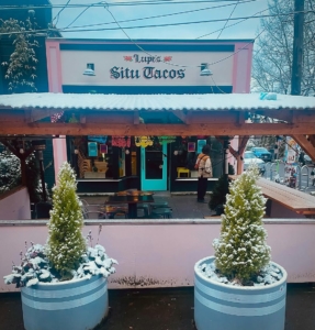 Situ Tacos, owned by Lupe Flores, brings together her Mexican and Lebanese heritage in a unique fusion inspired by her grandmother Delores. Don’t miss the hushwe tacos filled with Lebanese-spiced ground beef and butter, or the flavorful papas (potato) tacos for a vegetarian option.