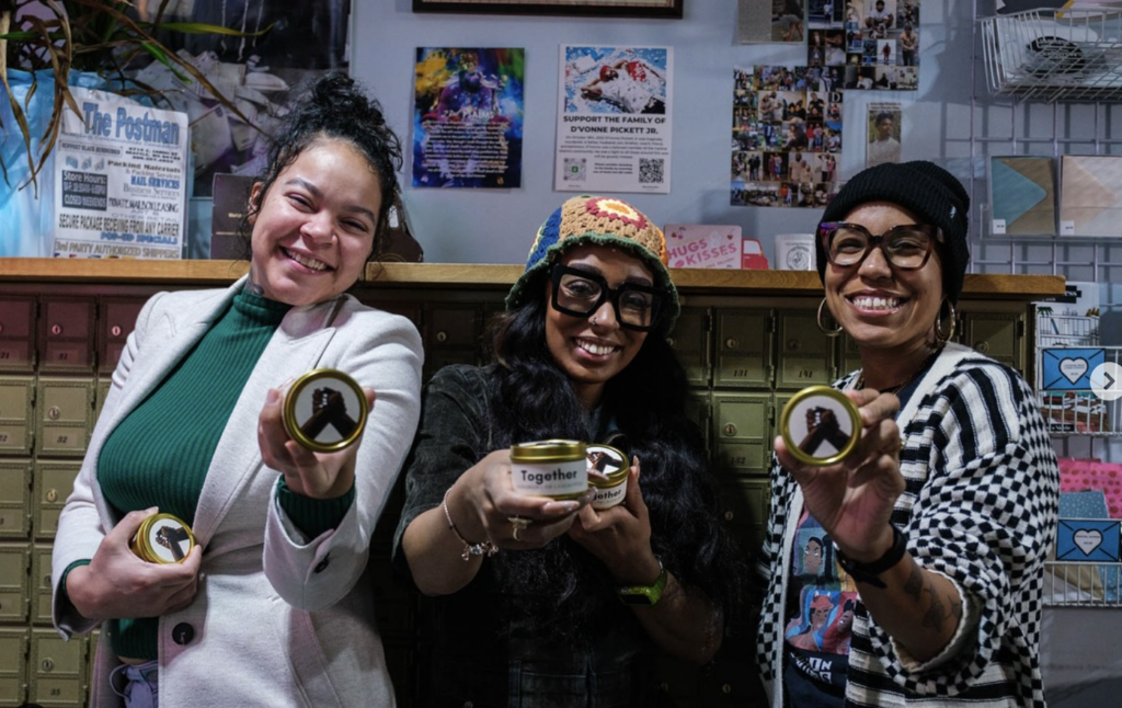 “Initially, my intention was to illustrate Brown hands exchanging money in different ways. But after speaking more with Intentionalist about possible future uses of the design, I decided to remove the money aspect & focus more on the themes of camaraderie & togetherness. Yes, we want money to stay in rotation with minority-owned and small businesses, but it’s also about the support amongst us that is the foundation.” – Jessie Lipscomb