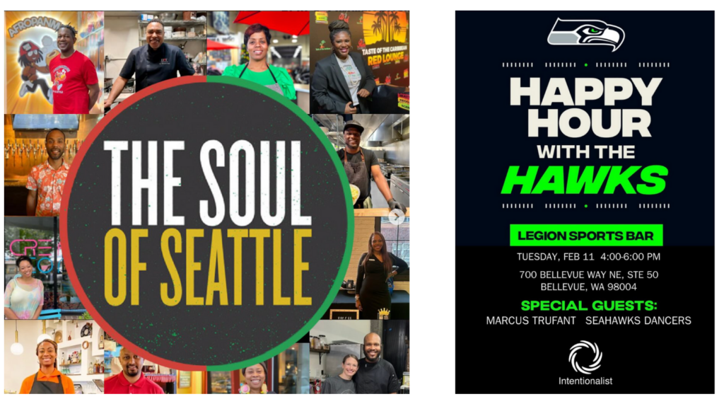 We were proud to support two great community events during Black History Month. The Soul of Seattle at Block 41 brought together the city’s Black food and beverage community for a night of amazing food that helped raise money for local youth programs. We also teamed up with the Seahawks for a special happy hour at Legion Sports Bar in Bellevue, where fans got to enjoy free appetizers like Southern Fried Catfish Nuggets and Steak Bites while hanging out with Seahawks legends like Marcus Trufant. Both events showed what’s possible when our community comes together to support local Black-owned businesses.